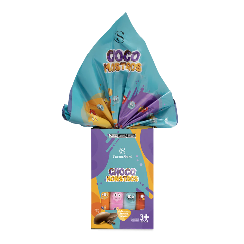 O Ovo de Páscoa ao Leite Canetas Chocomonstros é perfeito para quem quer unir sabor, criatividade e diversão nesta Páscoa. Produzido com chocolate ao leite cremoso e acompanhado de drageados crocantes, ele oferece uma experiência deliciosa para crianças e fãs da linha Chocomonstros. Para completar, o ovo vem com canetas coloridas dos Chocomonstros, ideal para brincar, personalizar e soltar a imaginação.