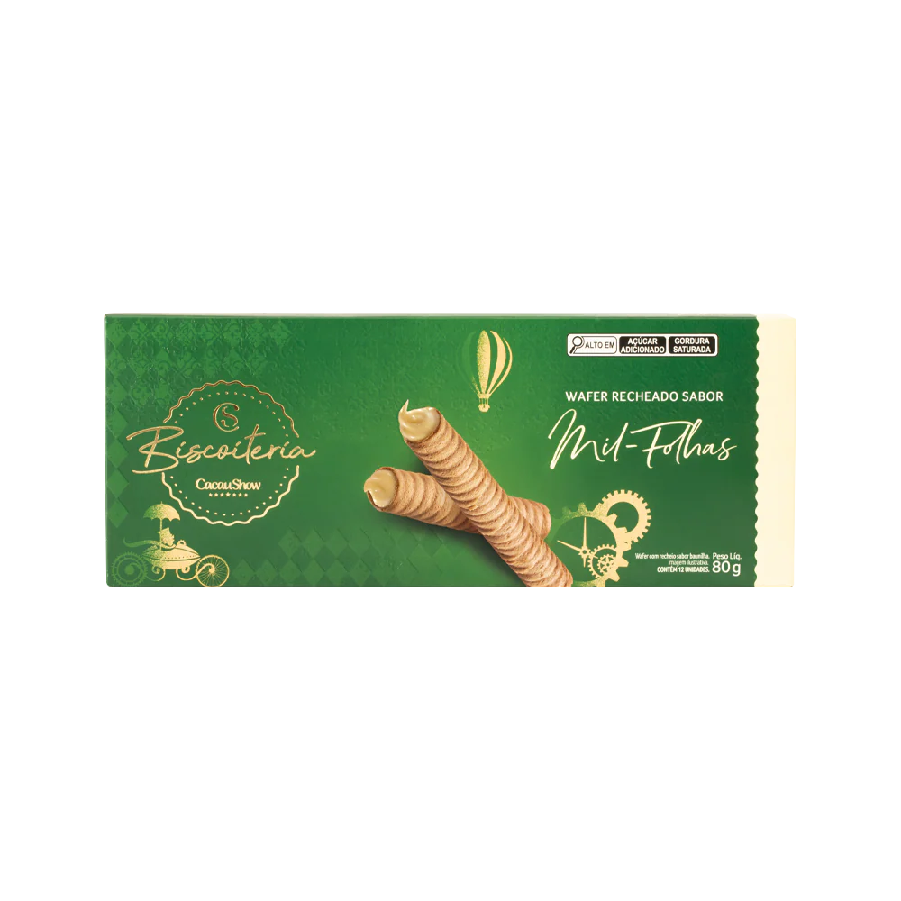 • Wafer crocante com recheio sabor mil-folhas.
